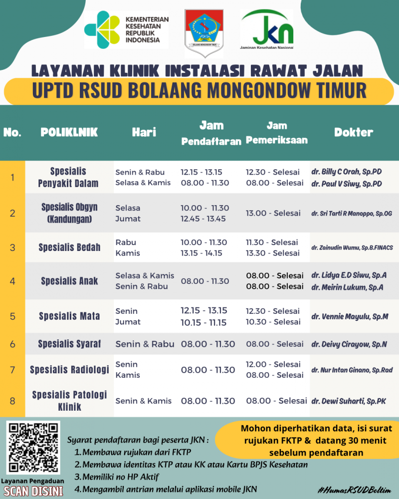 RSUD BOLAANG MONGONDOW TIMUR RILIS UPDATE JADWAL PELAYANAN POLIKLINIK RAWAT JALAN