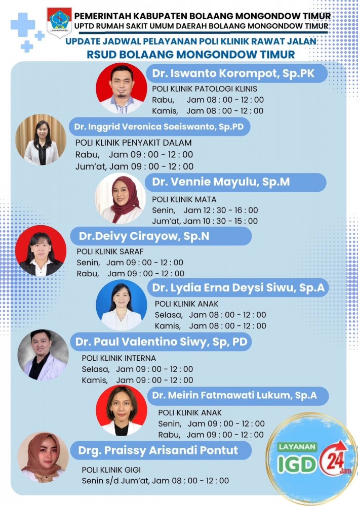 RSUD BOLAANG MONGONDOW TIMUR RILIS UPDATE JADWAL PELAYANAN POLIKLINIK RAWAT JALAN